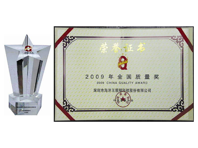 全國質量獎是對實施卓越質量管理,并在質量、經濟、社會效益等方面取得顯著成績的組織授予的在質量方面的最高榮譽。2009年,全國質量獎獲獎企業僅十家,海洋王就是其中一位。