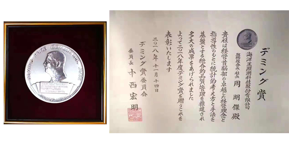日本戴明質量獎是全球三大質量獎之一,是被廣泛認可的世界性質量獎項,每年頒發給在品質方面做出重大改進的個人或公司。目前,海洋王是國內首家獲此殊榮的本土企業。