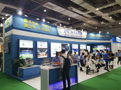 海洋王照明攜體育場館智慧照明解決方案亮相展會,吸引眾多客戶前來交流。